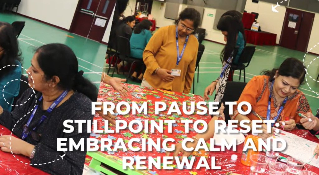 From Pause to Stillpoint to Reset: Embracing Calm and Renewal. The school leadership wellness session at OLS provided a refreshing shift from daily demands to a sanctuary of quiet comfort and togetherness. Leaders explored creative expression through sip & paint, dance, karaoke, and puzzles — discovering calm in colour, joy in music, and energy in movement. This flexible, relaxed approach offered multiple ways to recharge, proving that sometimes the most powerful step forward begins with a pause.